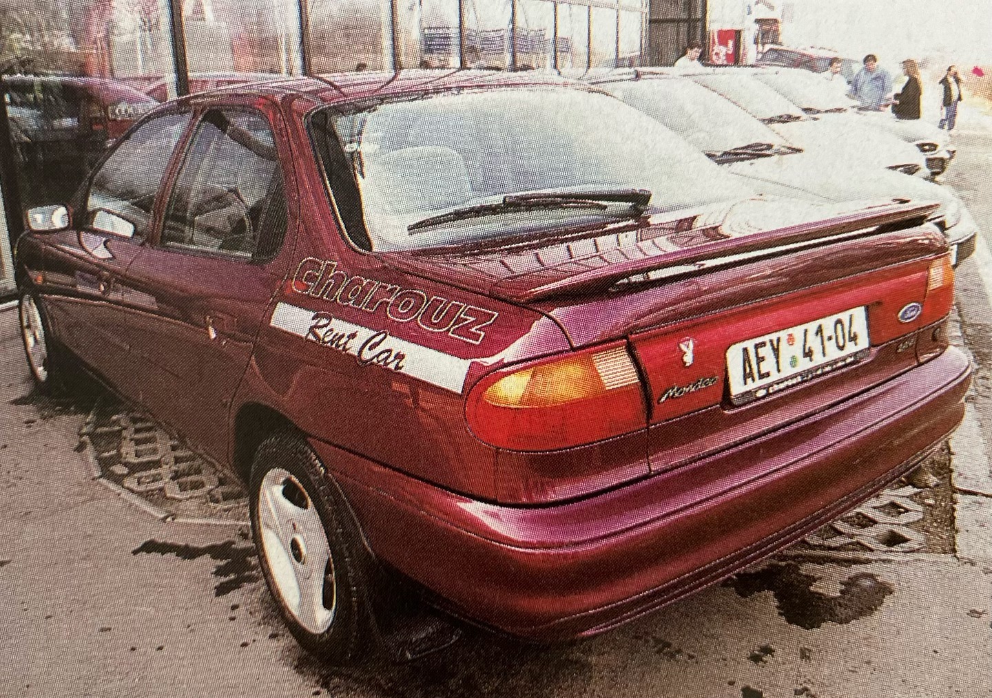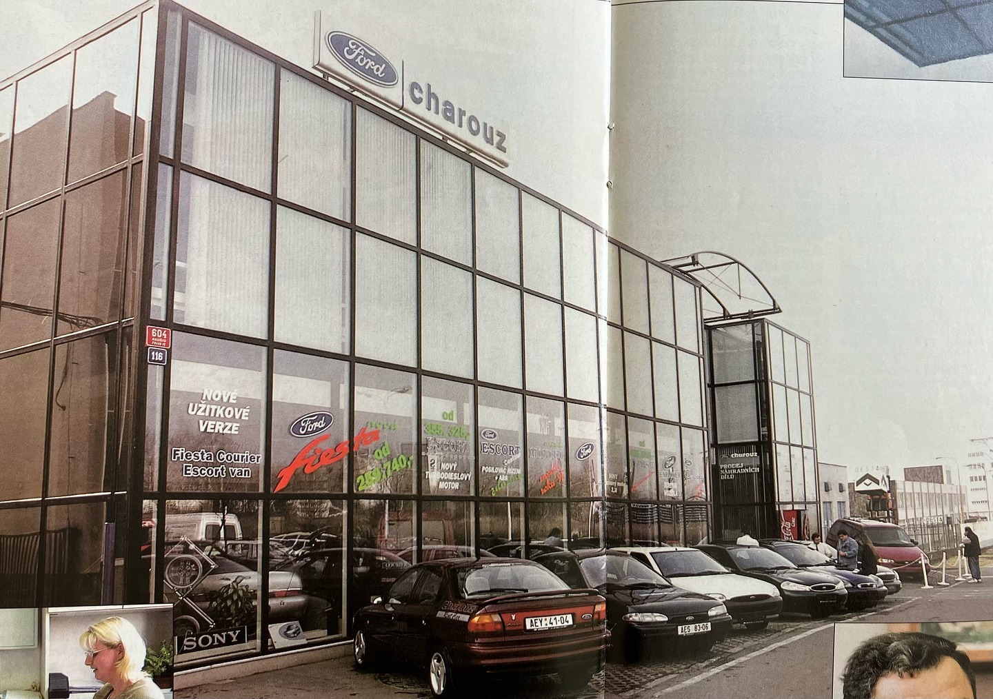 Autosalon FORD CHAROUZ, sídlící v Černokostelecké ulici v Praze, rok 1997.