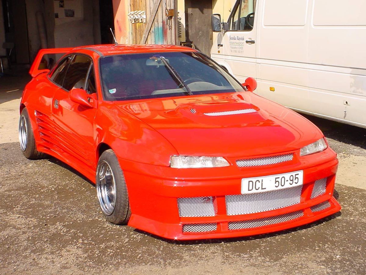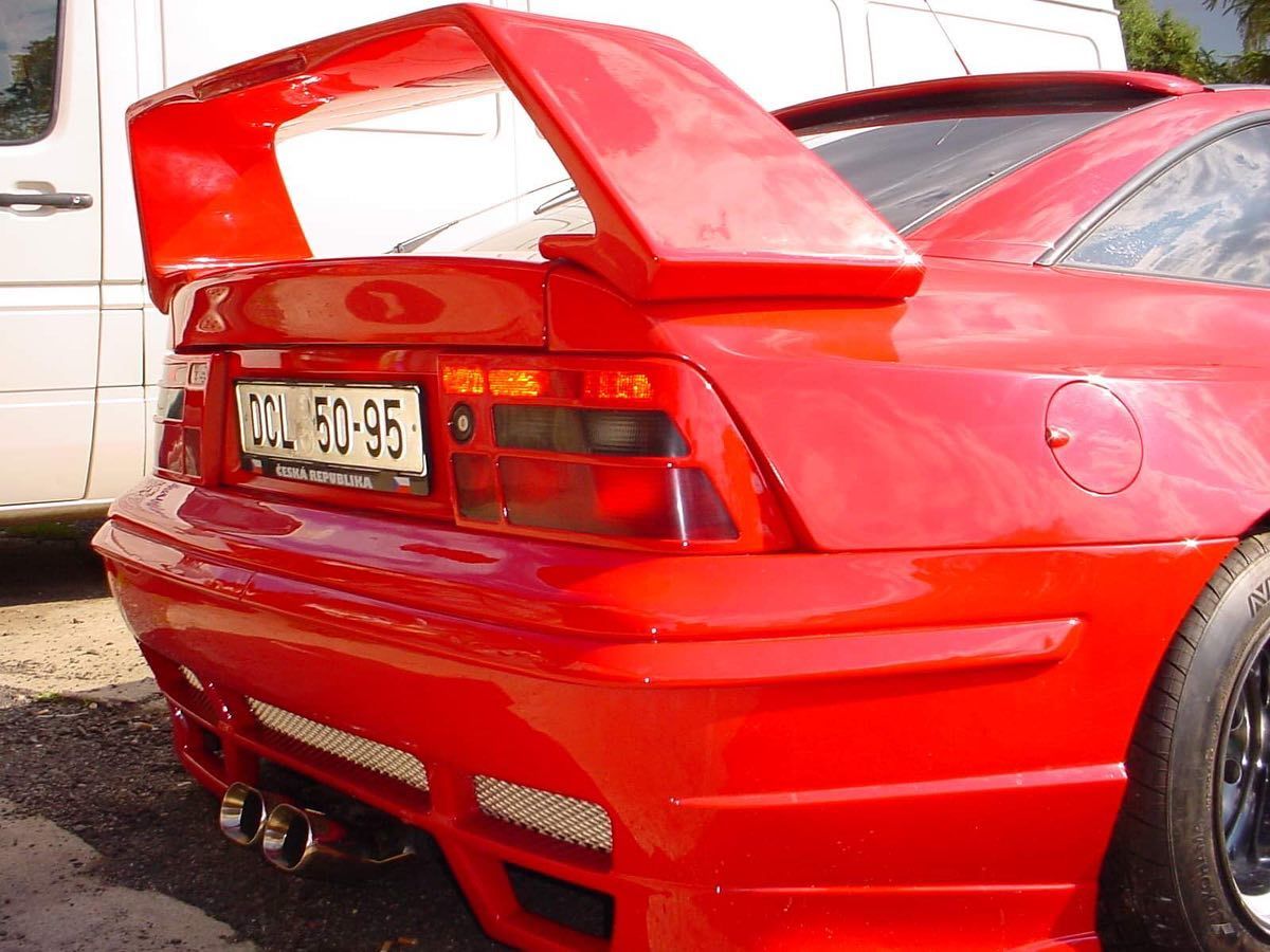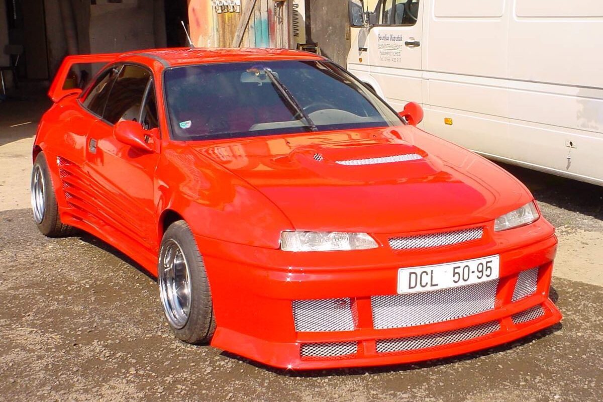 1. Fotografie červené extrémní stavby OPELu CALIBRA: soukromý archiv pana Miroslava Leška.