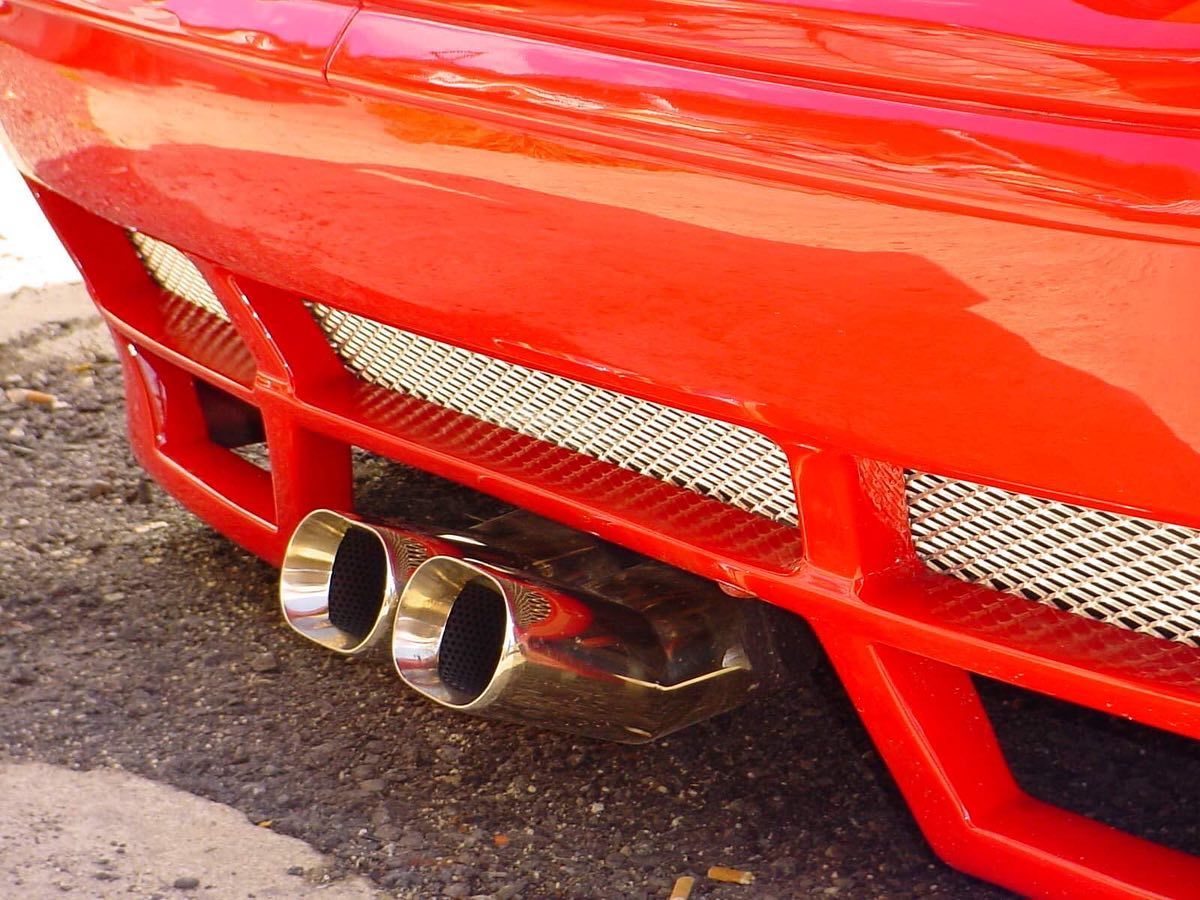 Stavitel vzpomíná, že boky byly tentokrát skutečně od firmy RIEGER TUNING a nárazníky různě upraveny dle přání majitele. Ten si také přál, aby byly výfuky uprostřed. Krásně jde vidět rozmanitost dílů, které byly t. č. na trhu.