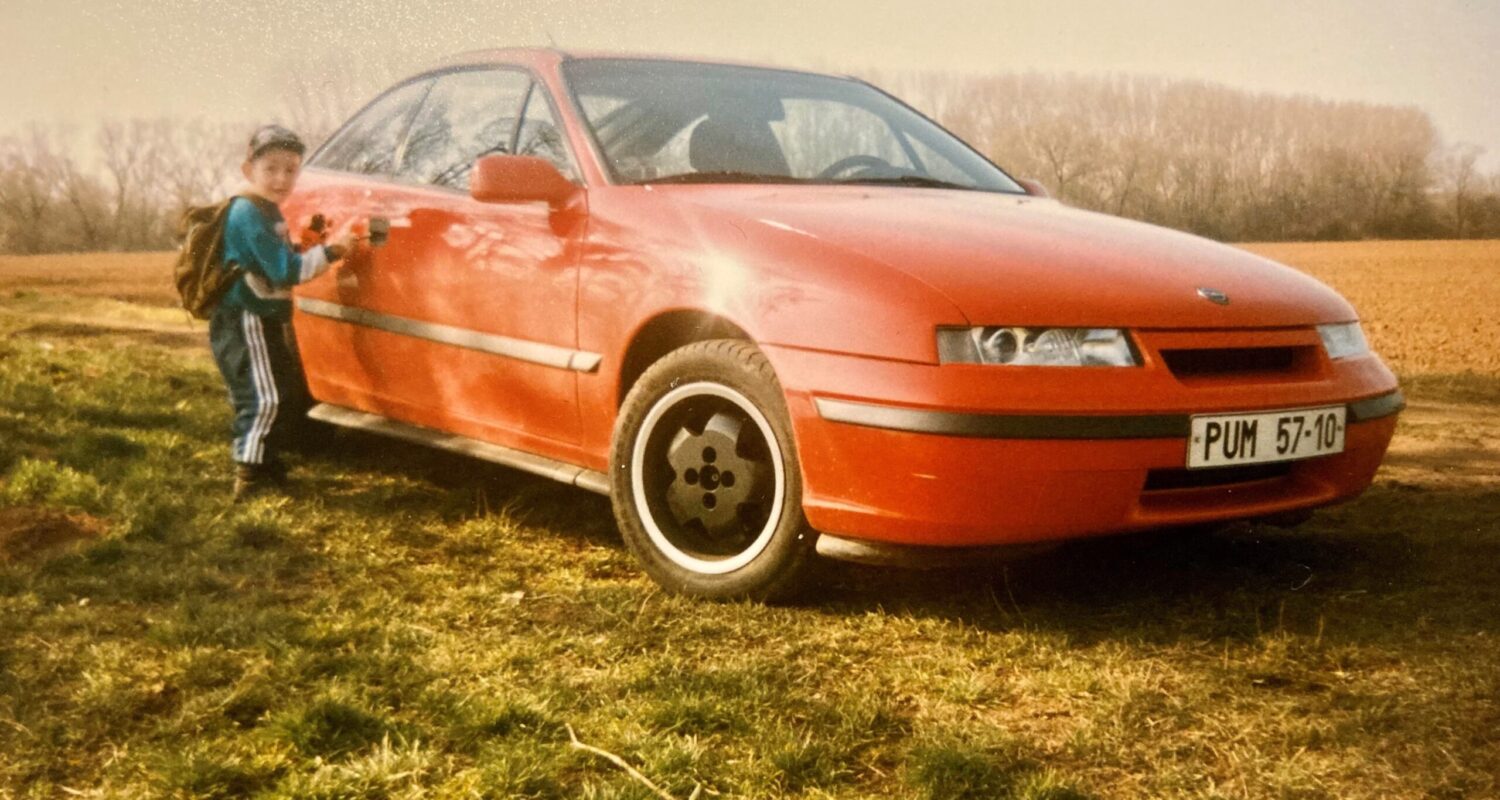 „Zasílám fotografie sebe, když mi bylo cca 5-6 let a našeho milovaného auta OPEL CALIBRA 2.0 16V r. v. 1990 (bez airbagů, klimatizace a Recaro interiérem). Calibru si můj tatínek přivezl v roce 1996, údajně od manželky fotbalisty Radka Bejbla. Úžasné auto! Fungovalo jako jediné auto v rodině, což si v dnešní době crossoverů a SUV nedokážu představit.