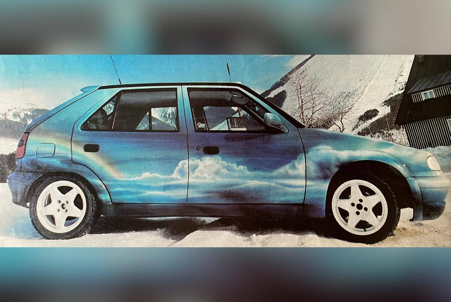 Nejvíce výrazným vizuálním prvkem je však airbrush, který zhotovila malířka Jitka Mašínová. Design kapoty zobrazuje horu Sněžku, boky reprezentují pohled z nejvyšších vrcholů, obohacený duhou.(2)