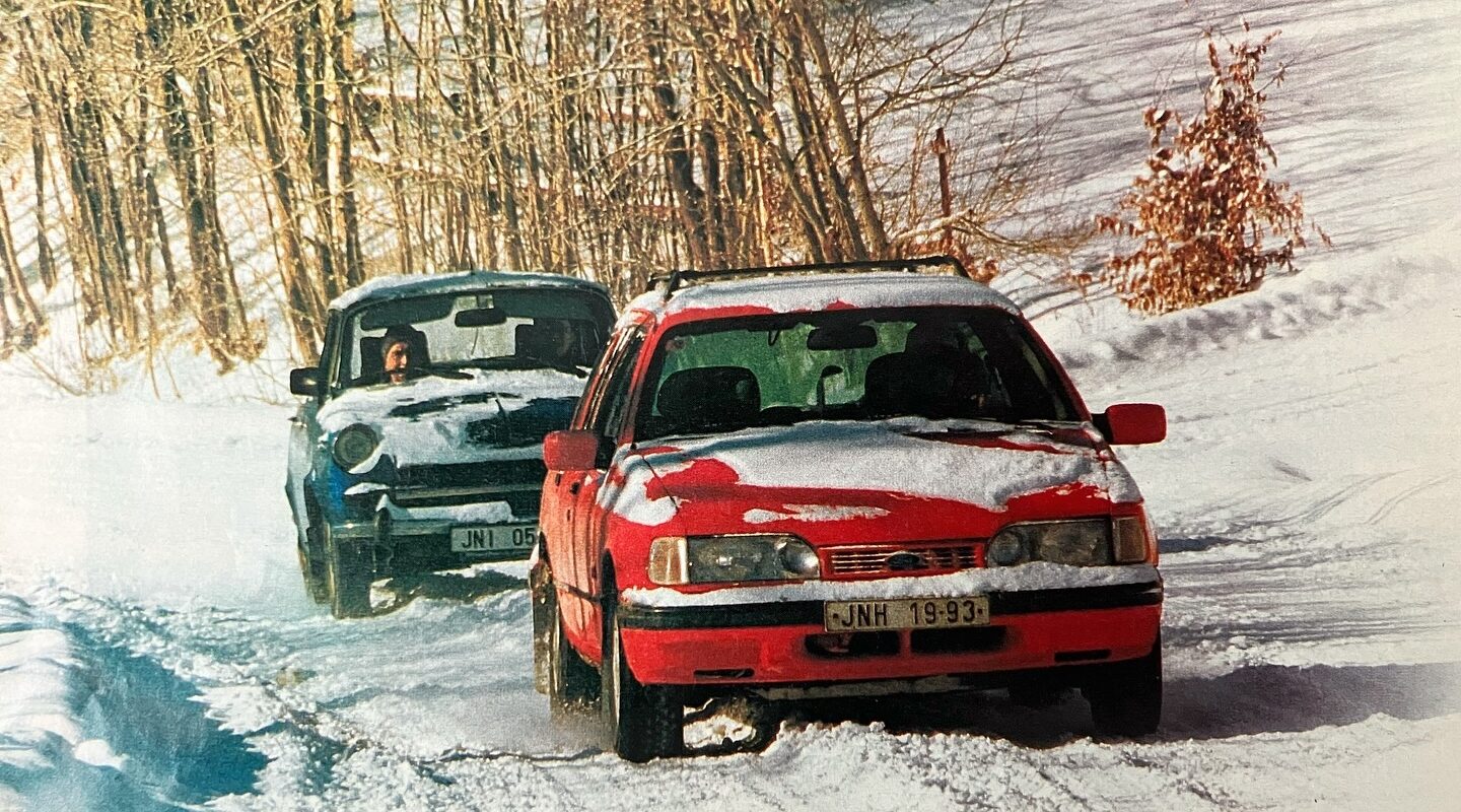 Tento pohled se vám mohl naskytnout (nejen) na severu Čech v 2. polovině 90. let! Toho času ještě provozní, stařičká ŠKODA 1000 MB „pronásleduje“ ojetinu ze západu, legendární evropský FORD SIERRA. Oba vozy byly registrovány v okrese Jablonec nad Nisou.(1)