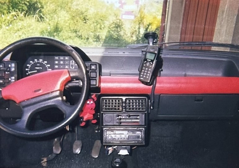 Jednalo se o typ, vyrobený roku 1986, osazený motorem 0.9 s čtyřstupňovou převodovkou, měl volant z Mitsubishi Lancer, upravené červené kožené potahy a nechybí ani držák na dobový mobilní telefon! ![]()