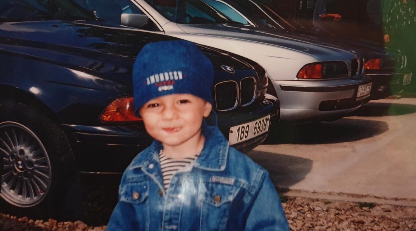 Momentka z dětství pana Jana K., cca rok 2005. V pozadí ikonická BMW E39, t. č. pár let stará.