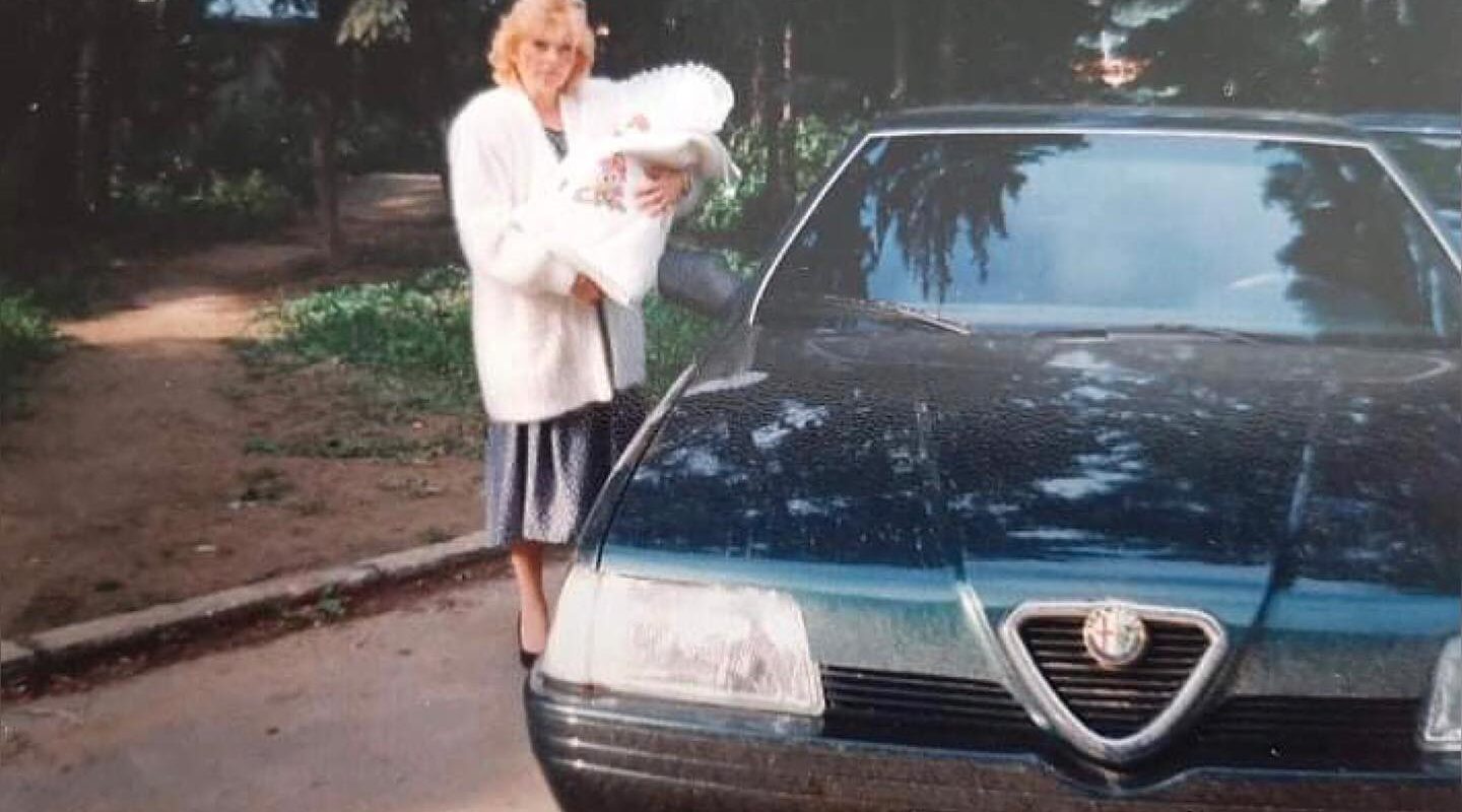 „9. října 1994, den kdy se vrátila máma i se ségrou z porodnice. Na fotografii je naše ALFA ROMEO 164 V6, byla to tehdy neskutečná loď,” vzpomíná pan David L.