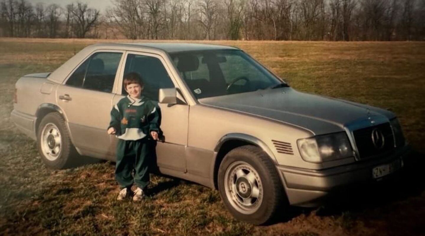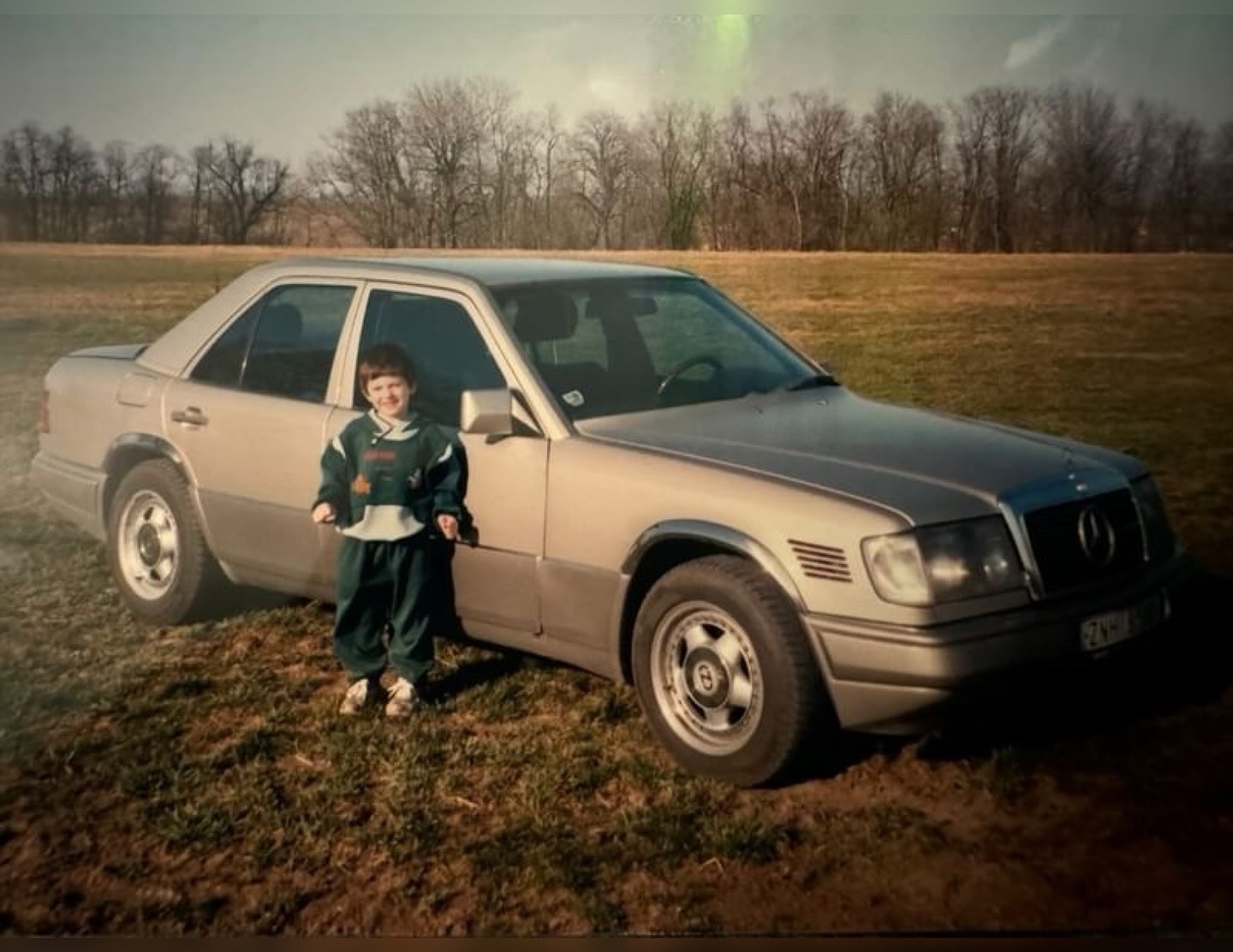 MERCEDES-BENZ 300D (W124) na fotografii patřil otci pana Radima H. Radim dodnes vzpomíná, jak jeho táta v devadesátkách onu fotku fotil. Vůz byl registrován v okresu Znojmo.