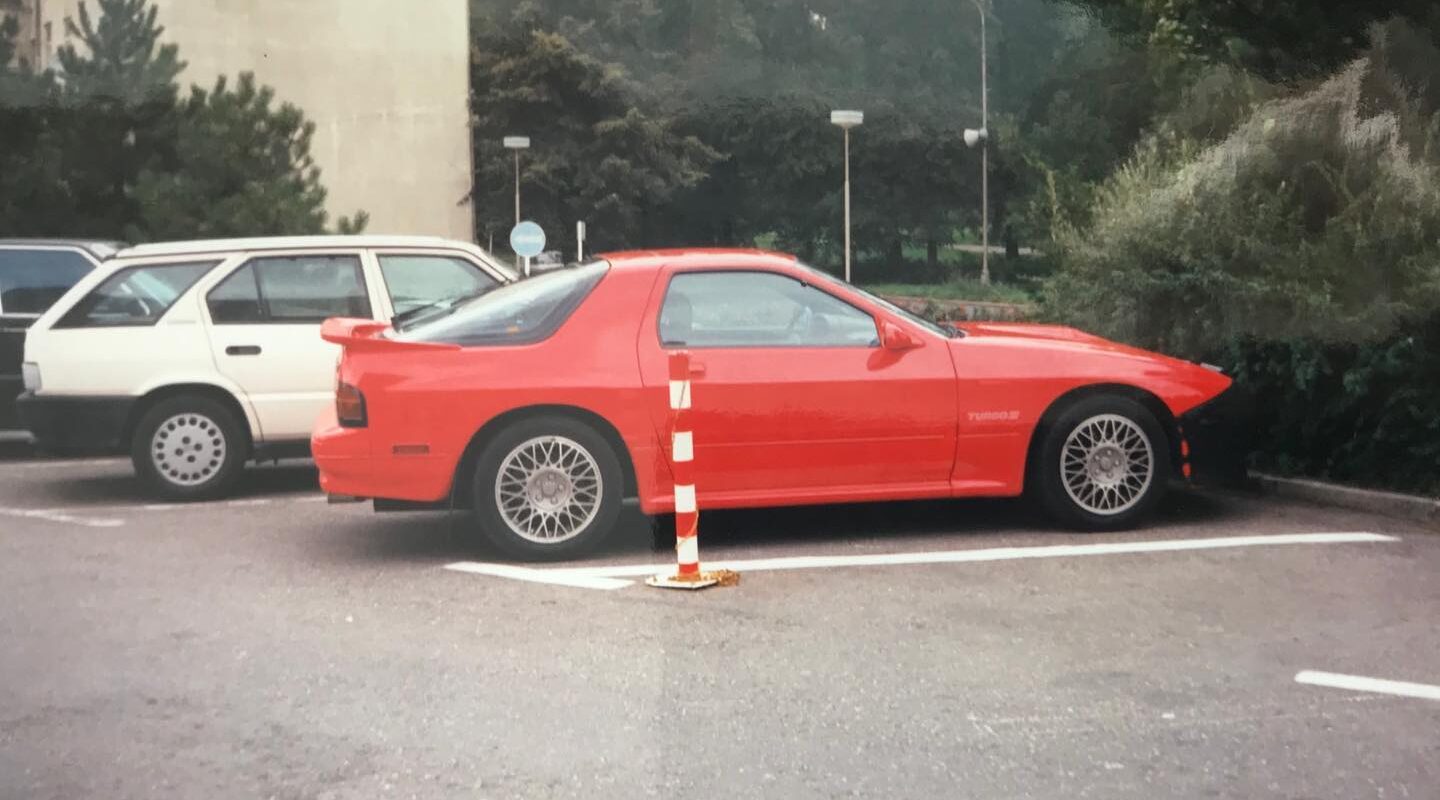 Tato fotka byla pořízena v Olomouci v čtyřiadevadesátém roce. ALFA ROMEO 33 SPORTWAGON „odpočívá“ vedle MAZDY RX-7 TURBO (FC).