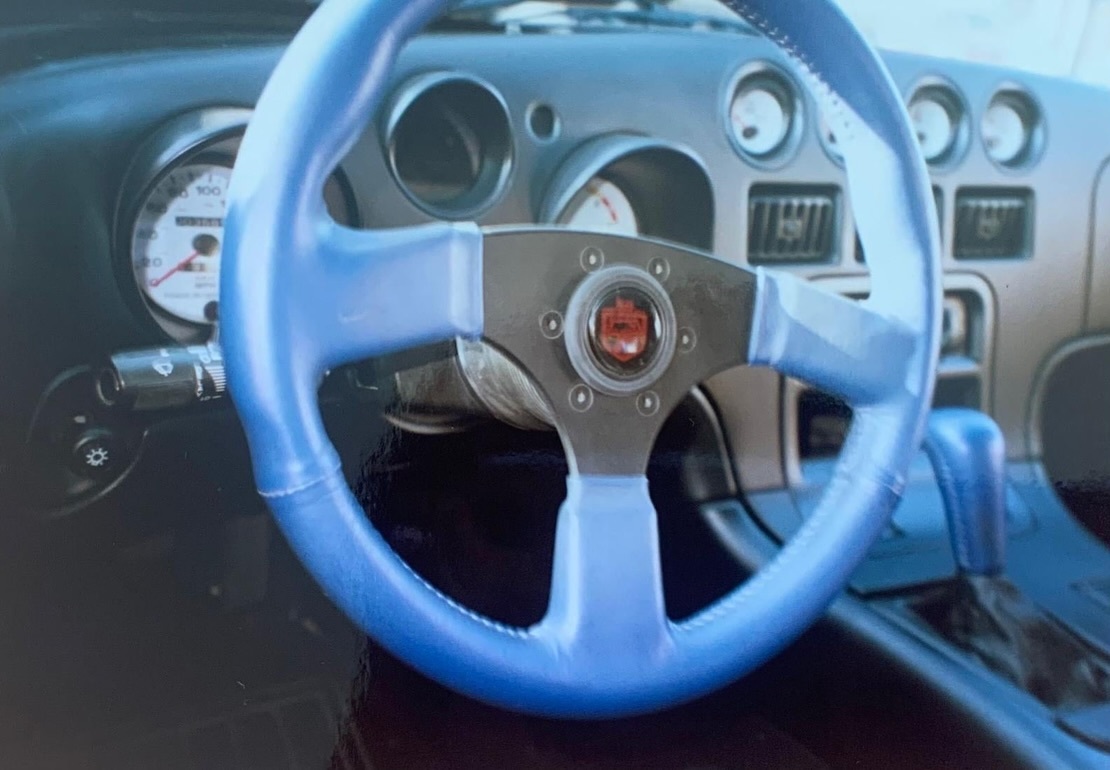Krásně žlutý DODGE VIPER RT/10 měl nezvykle modrý interier a tato nevídaná kombinace by udělala parádu i dnes.